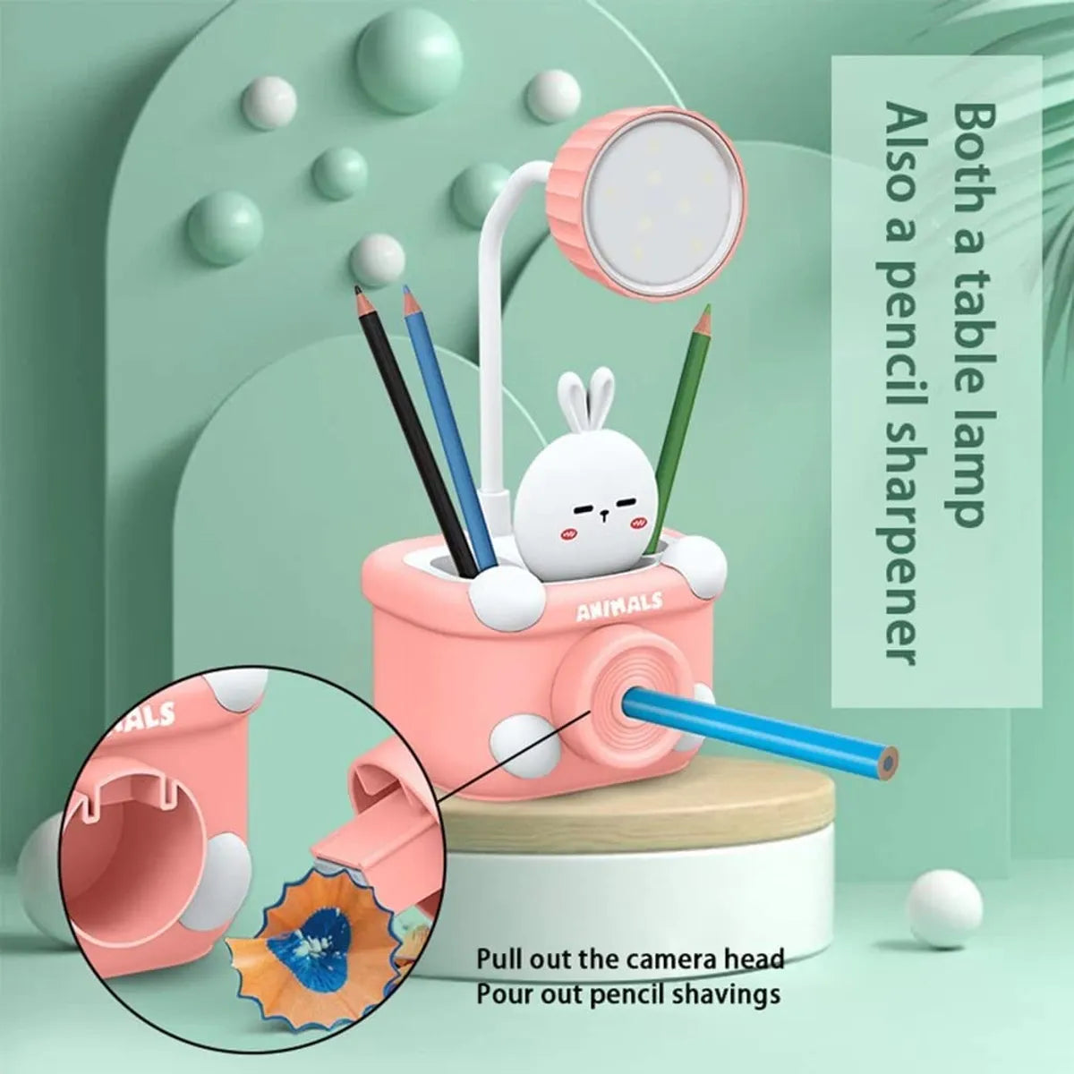 Plastic 3 in 1 USB Chargeable Led Light Table Night Lamp for Kids Bedroom with Pencil Sharpener & Pen Holder Stand for Girls & Boys (Multicolor)